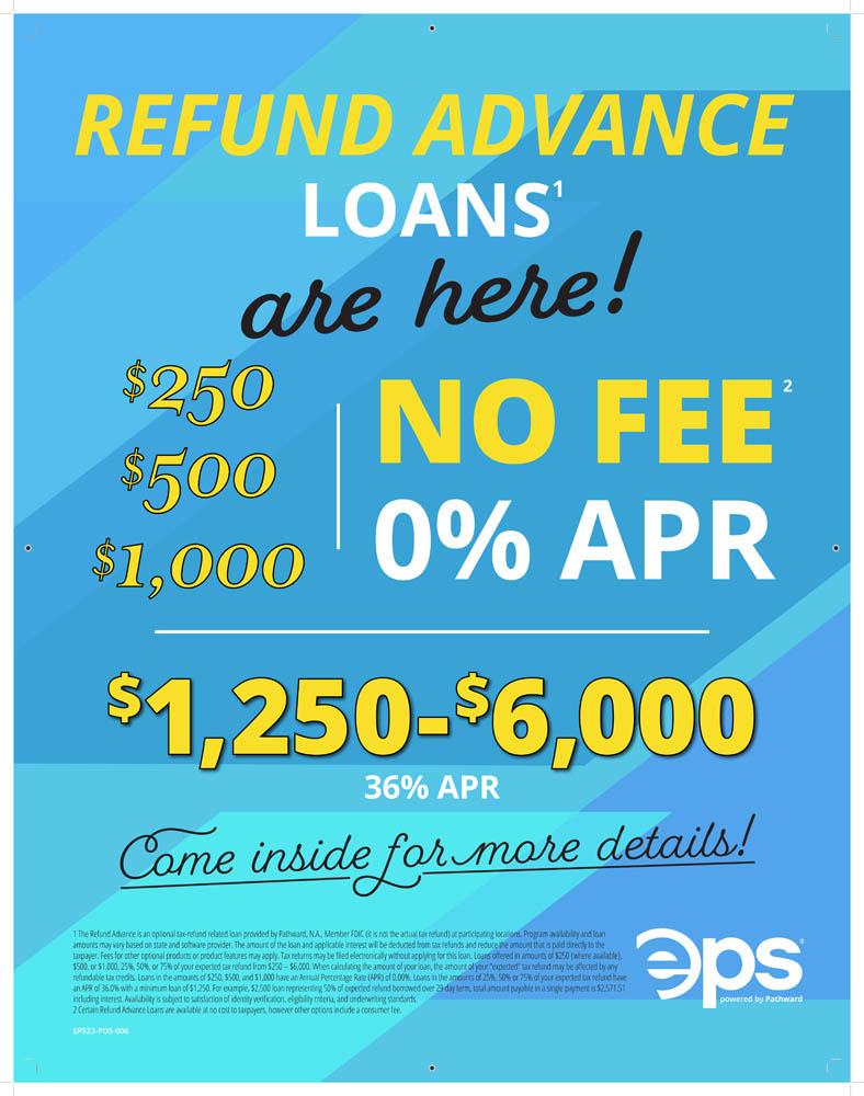 Take advantage of our $0 money down for tax prep services and advances starting at $250 all the way to $6000